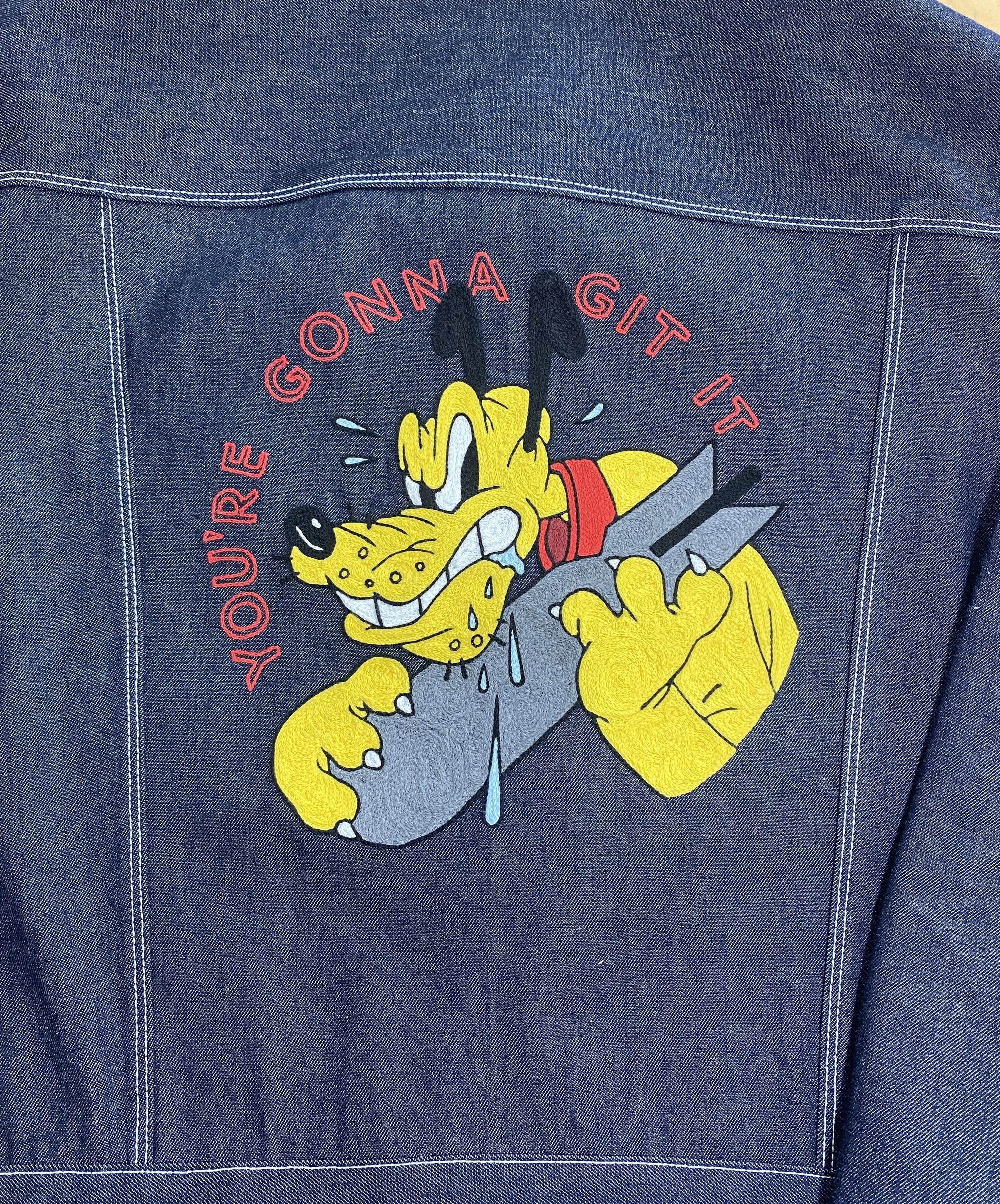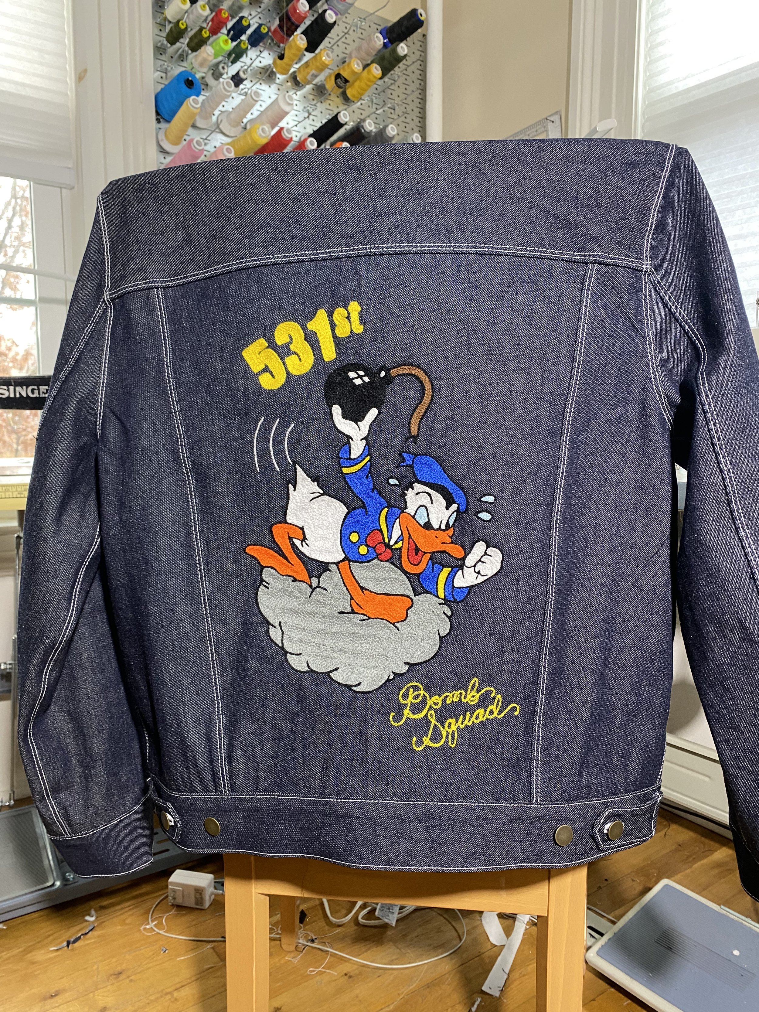 Custom chainstitch embroidery done on an 85+ year old vintage hand cranked Singer chainstitch machine.